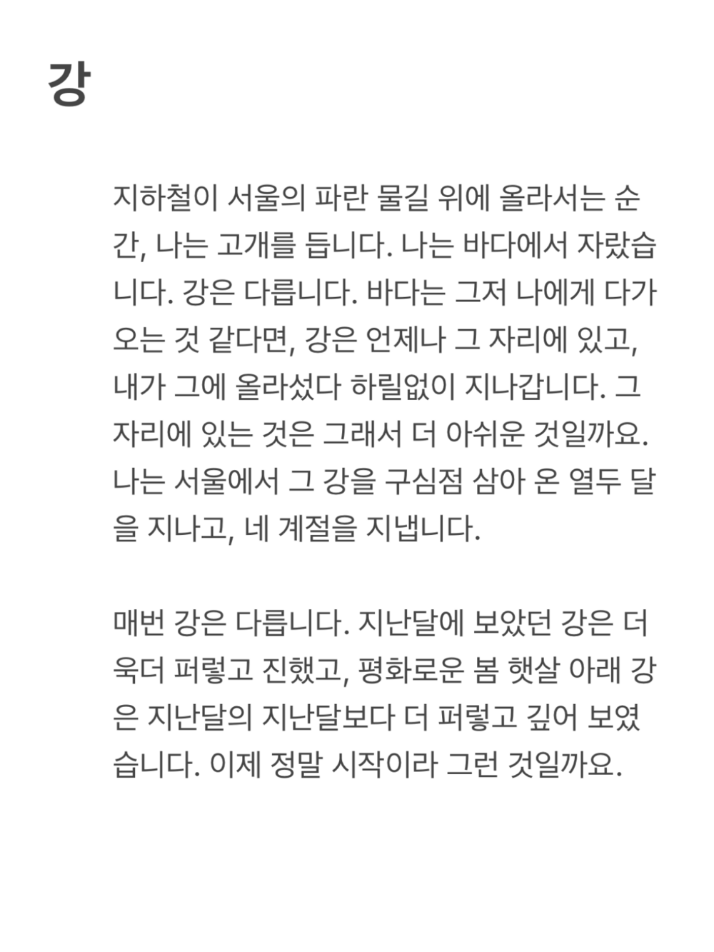 당신 곁에 닿는 색, 봄의 시작을 기억하는 살결 위의 강.