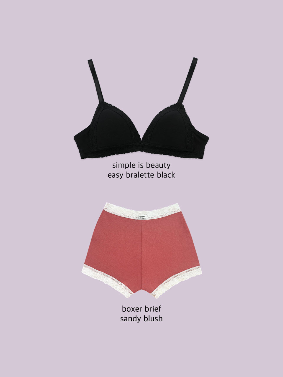심플이즈뷰티 이지 브라렛은 와이어가 들어가지 않은 브라렛입니다. 하지만 내장패드삽입 대신 일체형 스펀지 패드를 사용하여 가슴을 안정적으로 지지해주며, 컵 옆으로 몸을 둘러싸는 날개 부분을 넓게 만들어 가슴을 안정적으로 지지해줍니다. 심플이즈뷰티 이지 브라렛은 스트레치사가 들어간 코튼 원단으로 만들어졌으며, 실켓처리된 40수 순면으로 안컵 패드를 덧대어주어 우리 몸을 편안하게 감싸안습니다.
