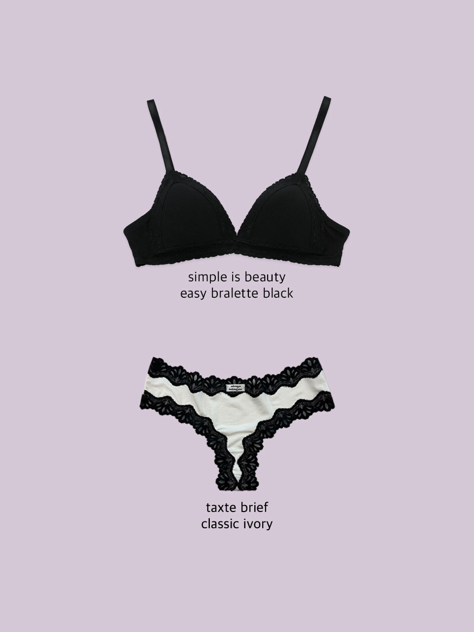 심플이즈뷰티 이지 브라렛은 와이어가 들어가지 않은 브라렛입니다. 하지만 내장패드삽입 대신 일체형 스펀지 패드를 사용하여 가슴을 안정적으로 지지해주며, 컵 옆으로 몸을 둘러싸는 날개 부분을 넓게 만들어 가슴을 안정적으로 지지해줍니다. 심플이즈뷰티 이지 브라렛은 스트레치사가 들어간 코튼 원단으로 만들어졌으며, 실켓처리된 40수 순면으로 안컵 패드를 덧대어주어 우리 몸을 편안하게 감싸안습니다.