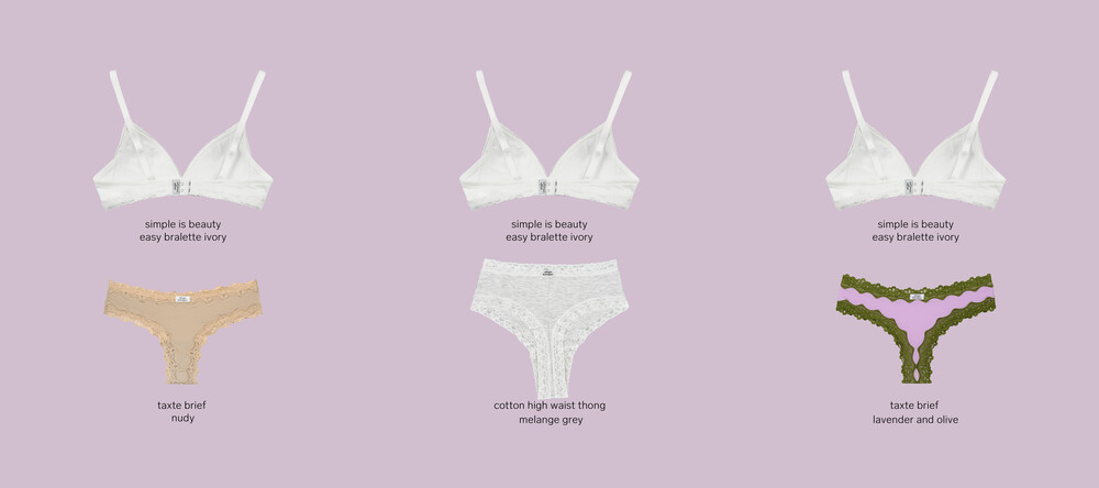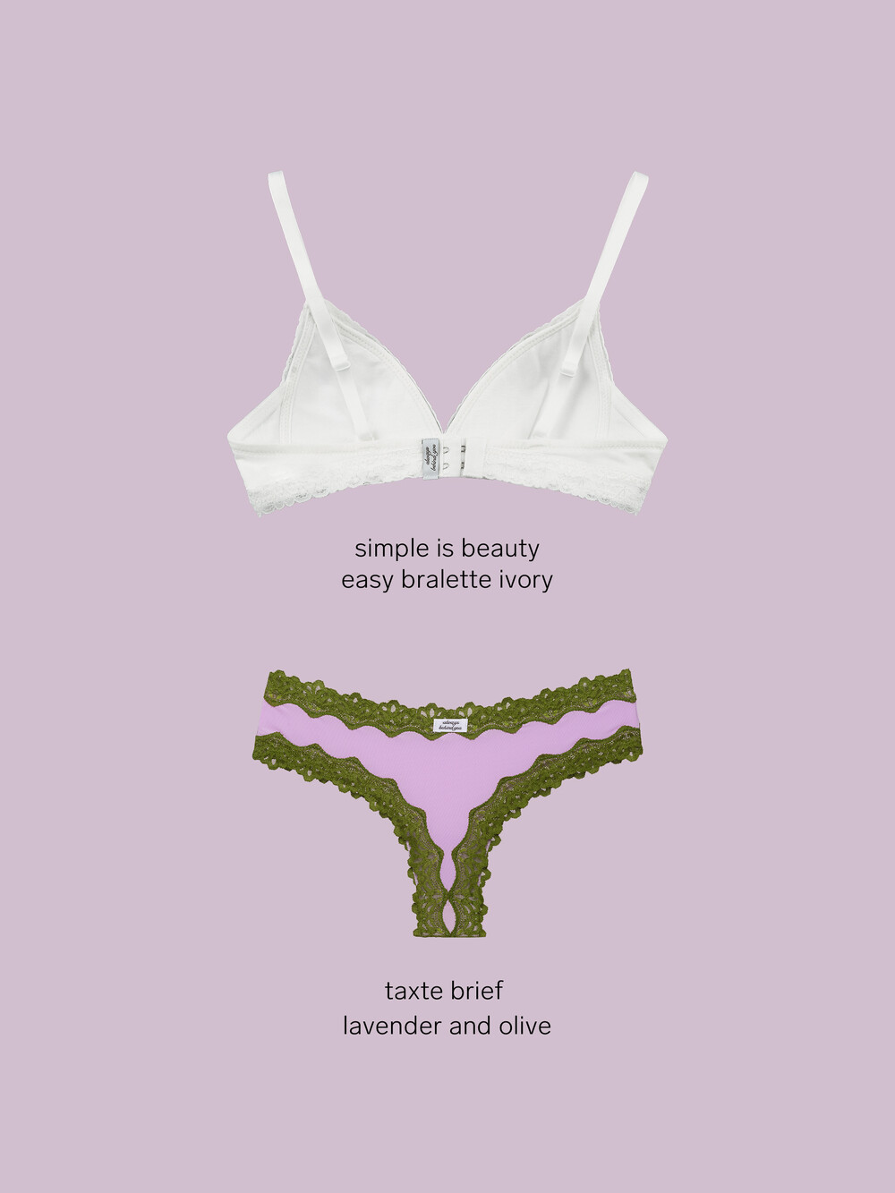 <이지 브라렛 아이보리> 와 <라벤더 앤 올리브>의 코디 세트 입니다.