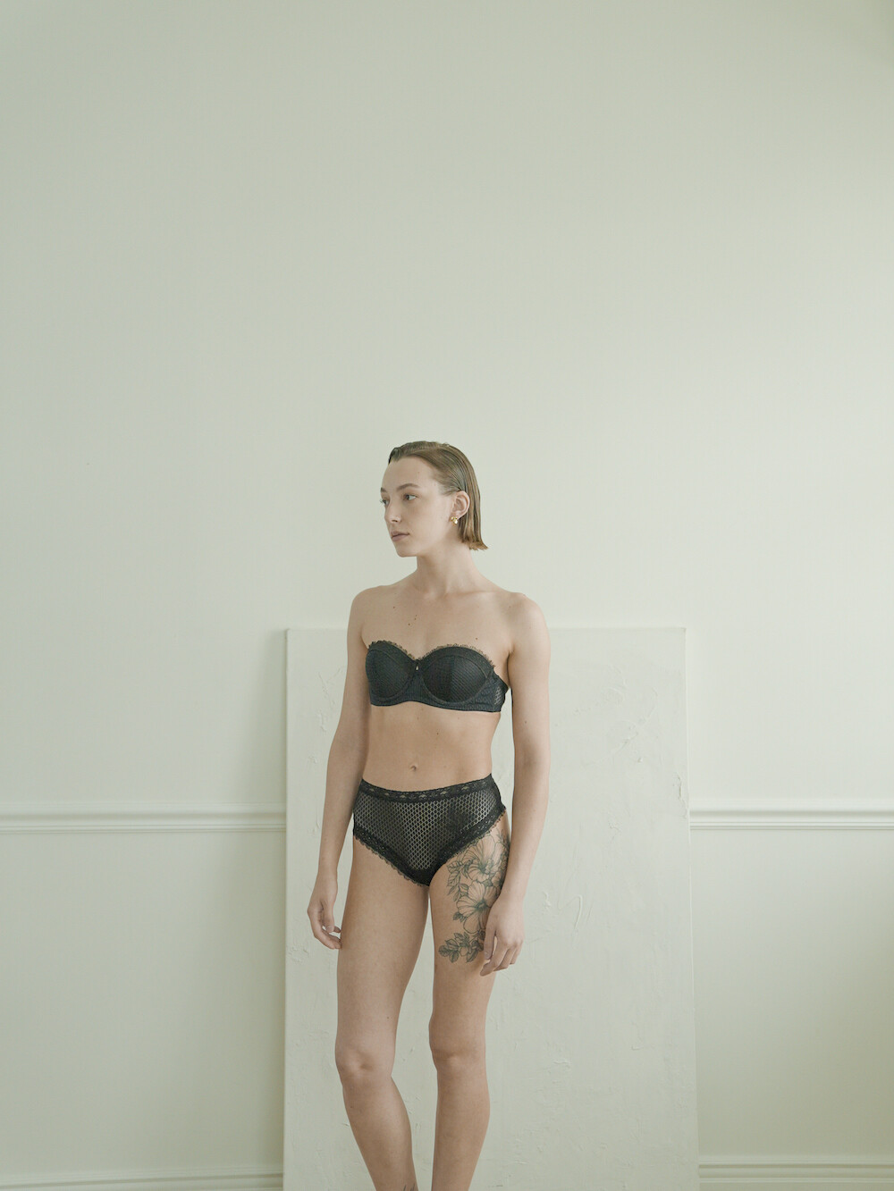 미스티 모닝 시리즈는 고리 처리가 되어 흐트러짐이 없는 고급 샹탈레이스와 국내에서 제작하는 올오버 레이스를 사용하여 우아한 무드를 연출할 수 있습니다. 빈티지 무드와 텍스테만의 란제리 로맨스를 잔뜩 녹여 만든 제품입니다. 탈부착이 가능한 어깨끈이 함께 배송되어 다양한 무드를 연출할 수 있습니다. 국내 공장에서 생산한 실리콘으로 날개 설계, 기본적으로 포함되는 4줄 후크,(75d컵과 80c컵에는 3칸 후크를 사용합니다) 그리고 실켓 처리된 순면 40수 안감 원단으로 편안한 착용감을 자랑합니다. 텍스테의 모든 하의류 제품은 아래 클러치 부분이 국내 일반 팬티라이너가 붙을 만큼 넓어 착용감이 건강할 뿐만 아니라 사타구니 위를 덮어주는 패턴이기에 어릴 때부터 고무줄 팬티를 입어와 사타구니가 착색된 한국 여성의 몸을 가장 아름답게 보여줍니다. 하이웨이스트 텅은 한국 여성의 가장 잘록한 웨이스트 라인에 오는 기장감으로 여성의 굴곡을 더 아름답게 만들어 줍니다. 란제리 텍스테의 모든 제품은 단품으로 구매 가능합니다. 란제리를 꼭 세트로 입을 필요는 없습니다. 그날의 무드에 따라 다른 디자인의 브라와 팬티를 새롭게 매칭해보세요. 텍스테는 모든 아름다움을 응원합니다.