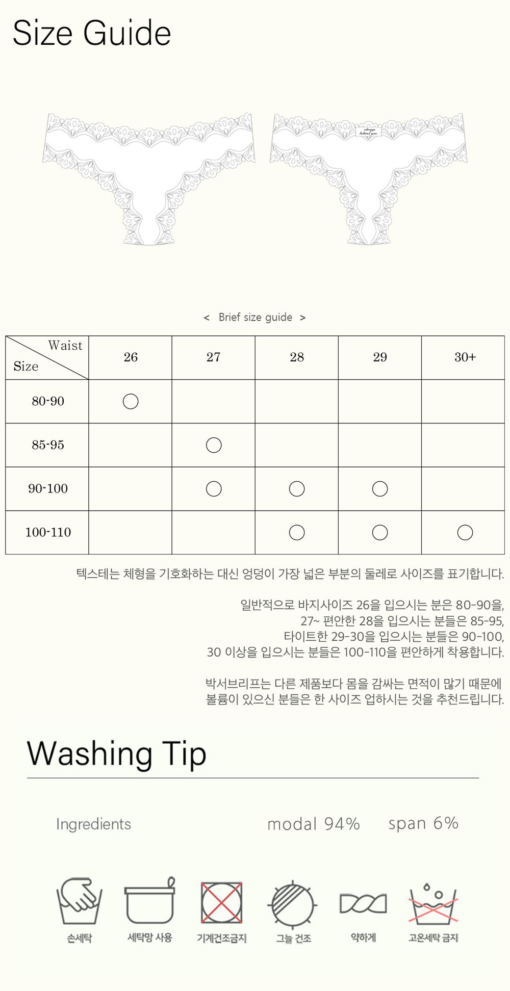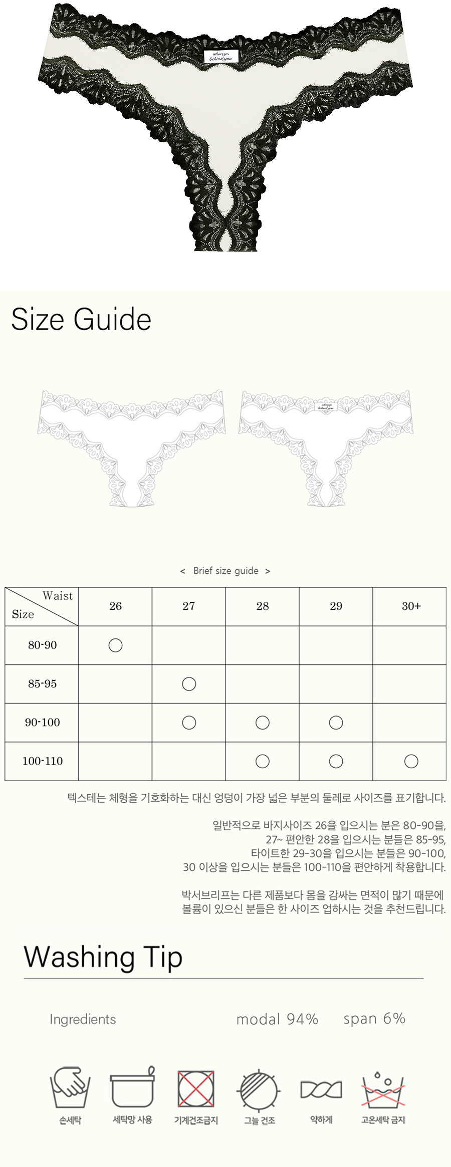 텍스테 브리프는 티팬티와 치키팬티 라인의 중간 라인으로 엉덩이 라인을 가장 예쁘게 보이도록 만들어주는 새로운 패턴 라인입니다. 평소 팬티 라인이 신경쓰이지만 티팬티가 불편했던 분들에게 추천드리는 제품입니다. 기존의 티팬티나 치키팬티와는 달리 순면 40수의 원단을 국내 팬티라이너가 붙을 만큼 넓고 길게 덧대어 여성의 부담감을 최소화하였으며, 고무줄 밴드 대신 레이스와 봉제법을 사용하여 장골 쓸림이 없으며 팬티 라인이 드러나지 않습니다. 텍스테는 모든 여성이 자기 체형의 아름다움을 발견하기를 응원합니다.