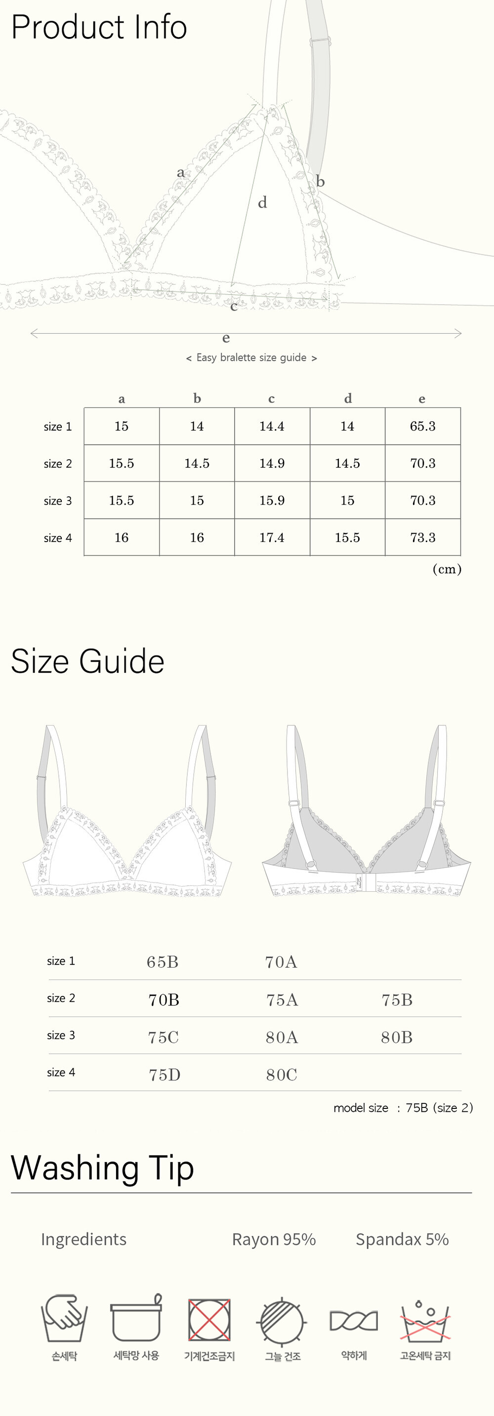 • 브라 사이즈 교환시 상단 Q&A으로 구매 내역과 함께 교환하실 사이즈를 알려주세요. 반품된 제품의 상태를 확인한 후 다른 사이즈로 교환해드립니다.