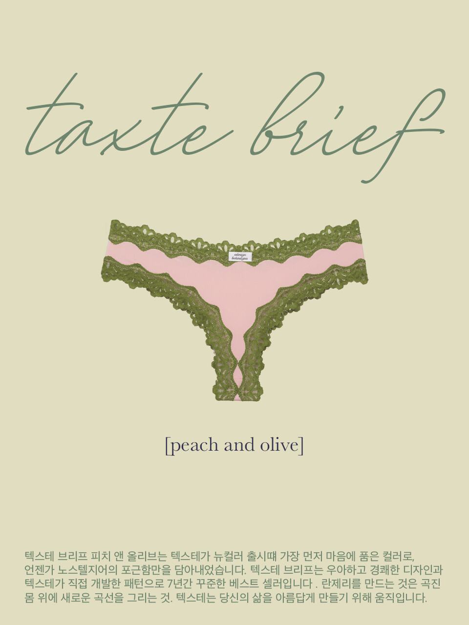 텍스테 브리프는 티팬티와 치키팬티 라인의 중간 라인으로 엉덩이 라인을 가장 예쁘게 보이도록 만들어주는 새로운 패턴 라인입니다. 평소 팬티 라인이 신경쓰이지만 티팬티가 불편했던 분들에게 추천드리는 제품입니다. 기존의 티팬티나 치키팬티와는 달리 순면 40수의 원단을 국내 팬티라이너가 붙을 만큼 넓고 길게 덧대어 여성의 부담감을 최소화하였으며, 고무줄 밴드 대신 레이스와 봉제법을 사용하여 장골 쓸림이 없으며 팬티 라인이 드러나지 않습니다. 텍스테는 모든 여성이 자기 체형의 아름다움을 발견하기를 응원합니다.